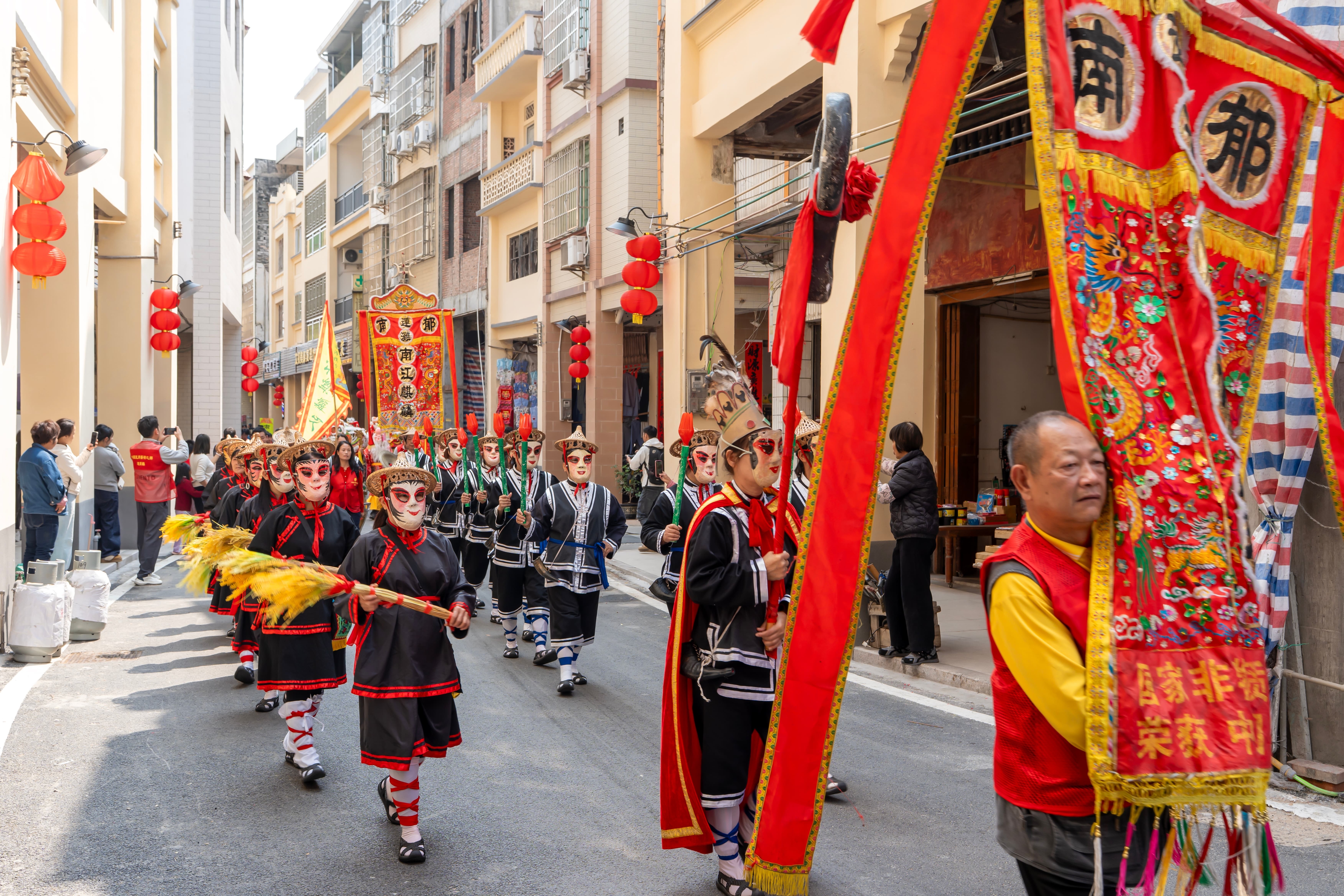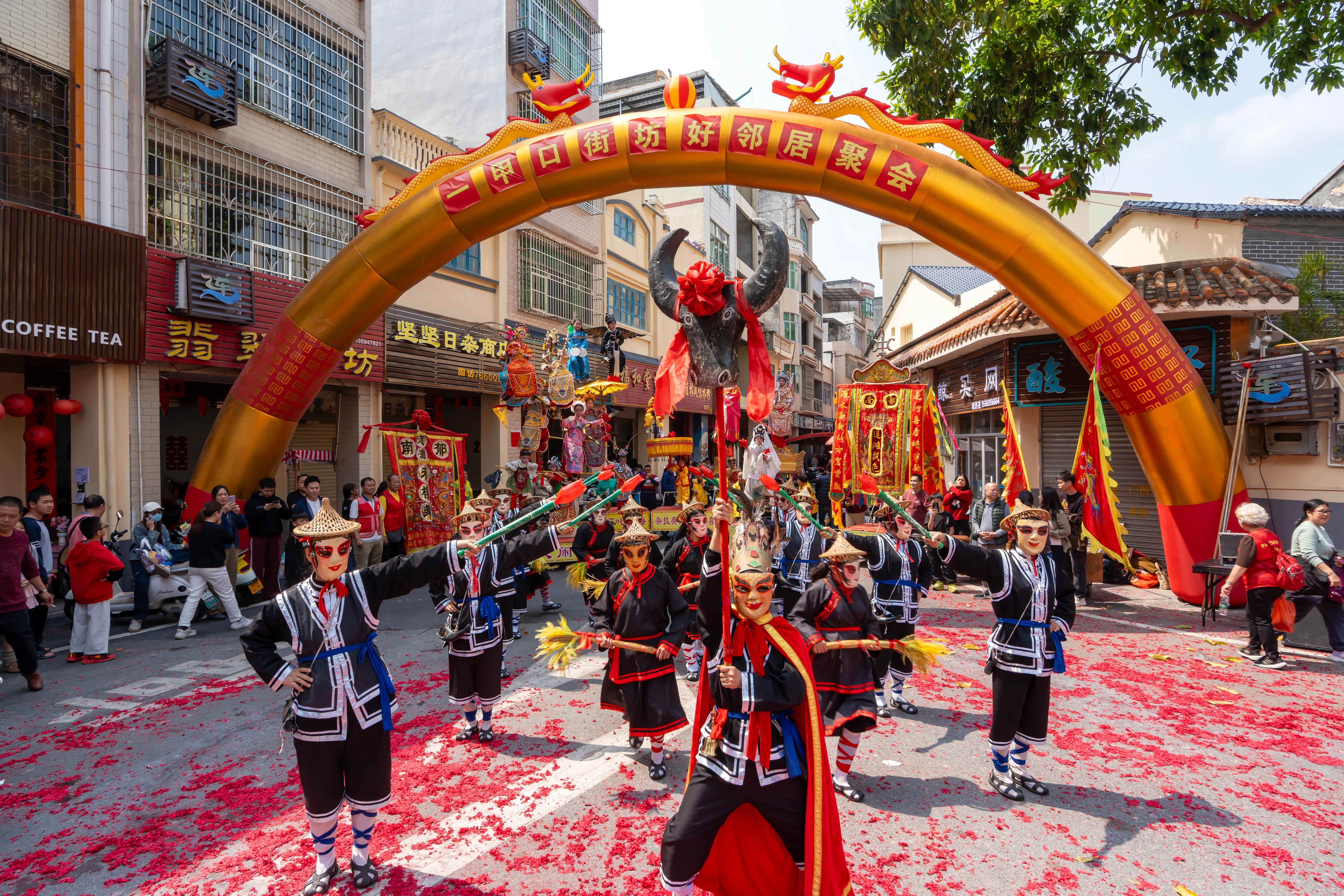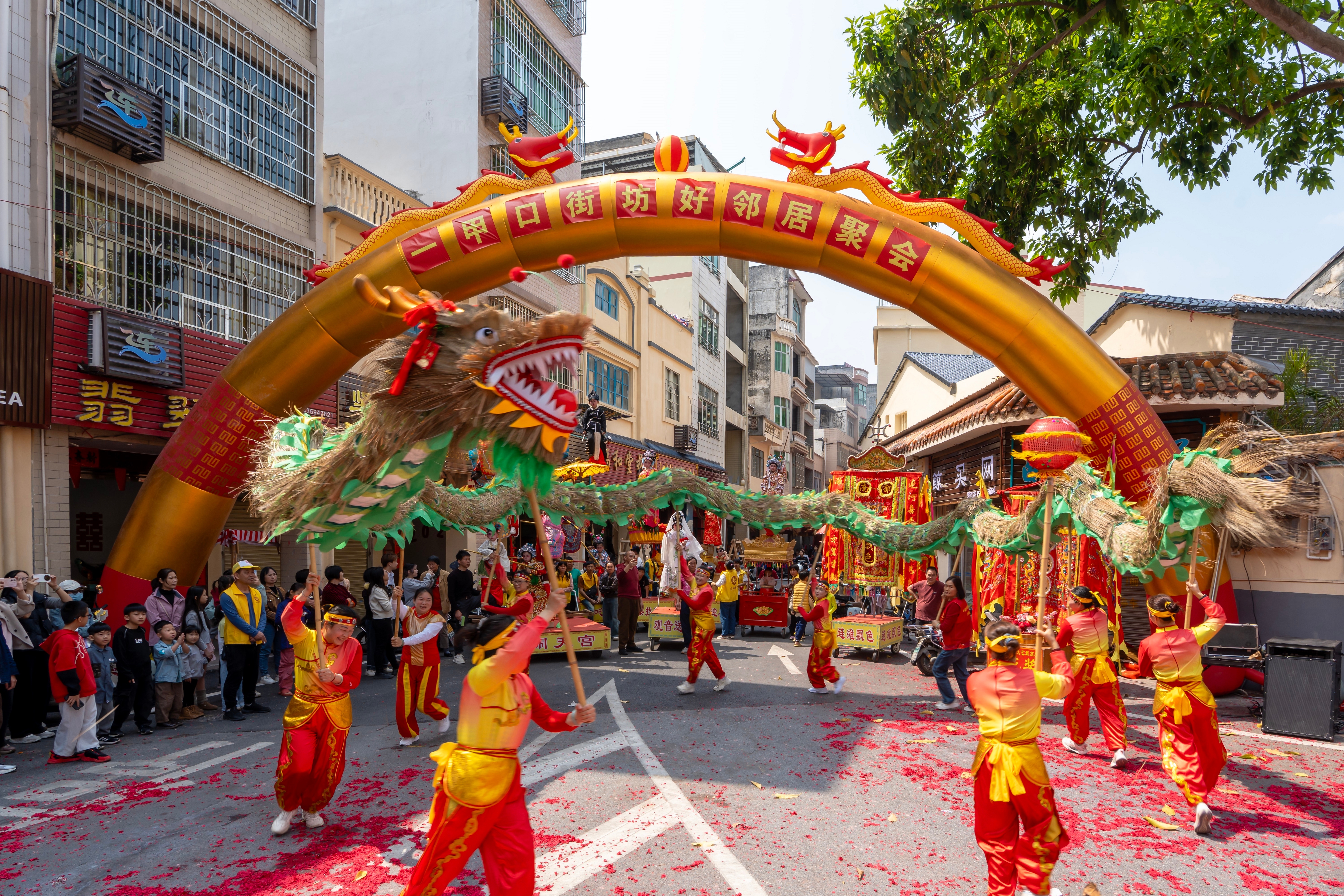 当日,维新路两侧经过重新粉刷的骑楼建筑群在春日阳光下更显素雅明亮,茅龙舞的刚劲笔触、连滩飘色的灵动飘逸等数十个传统文化节目轮番登场,为现场的居民与游客献上视觉盛宴。这些非遗项目,在骑楼街的时空交错中更显历史厚重——二甲、三甲、四甲、五甲等古老地名沿街铺展,狭窄街道两侧底层架空的骑楼廊道绵延上千米,形成独特的“风雨长廊”景观,恰是近代岭南商业建筑“商住一体”智慧的活态见证。